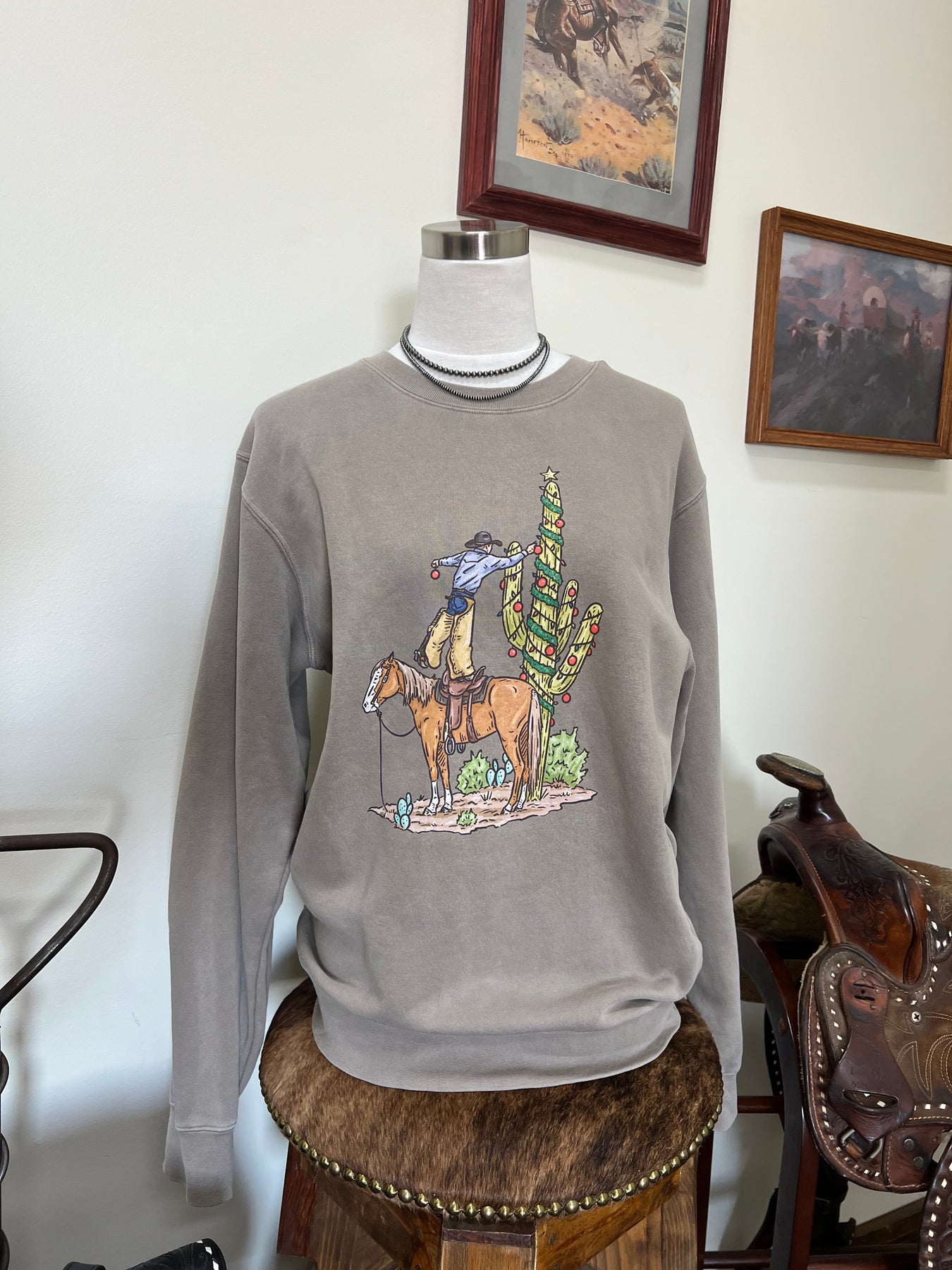 Christmas Saguaro Crewneck-Concrete