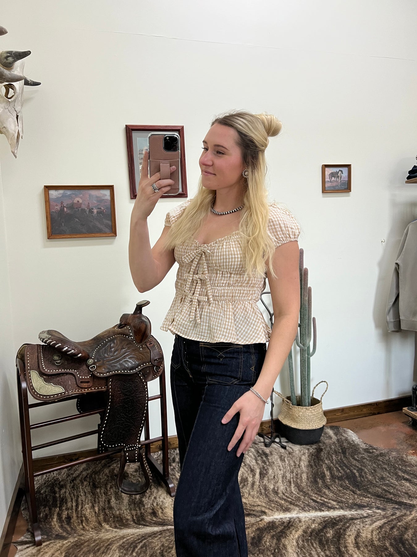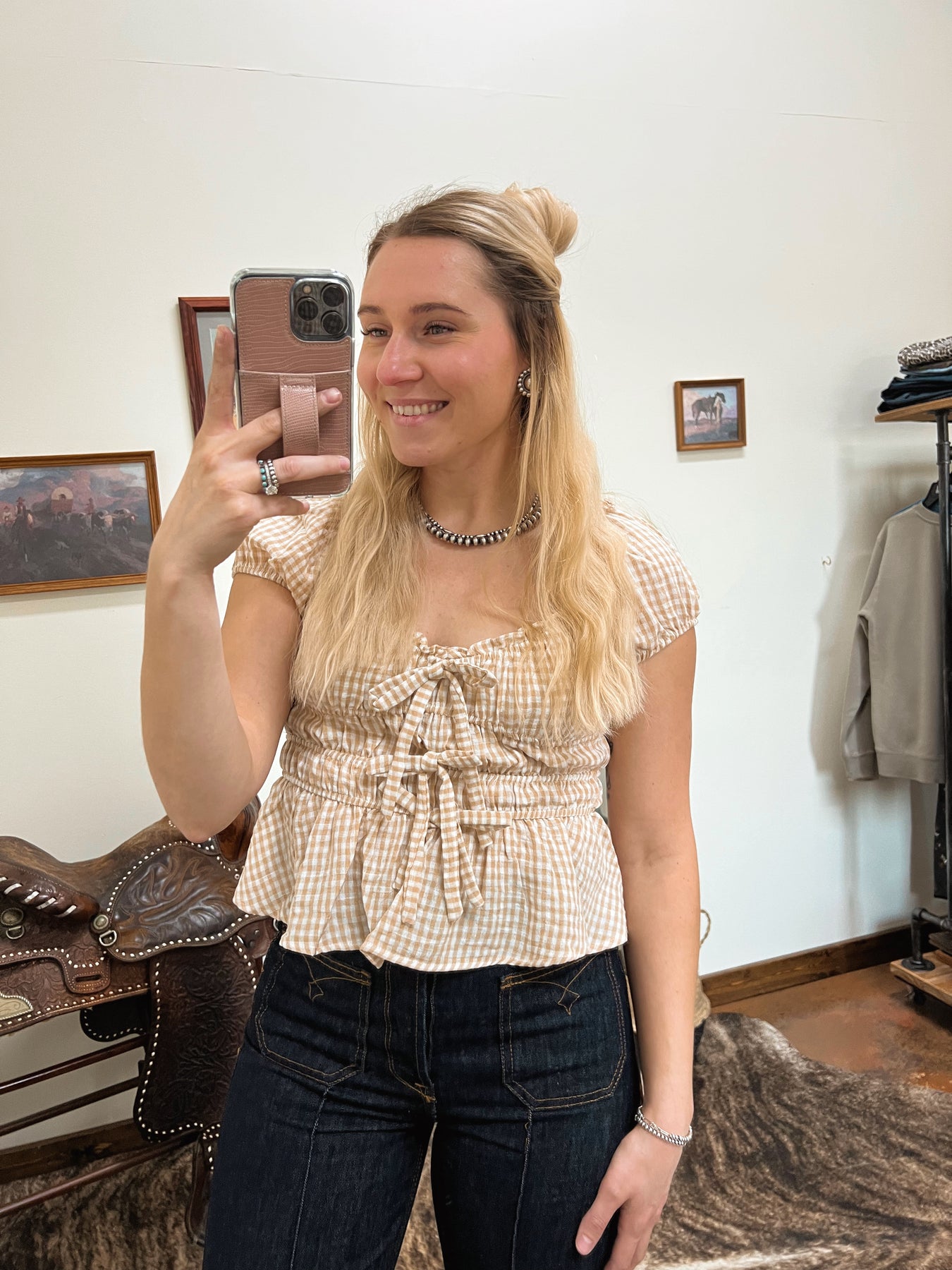 Gingham Tie Top