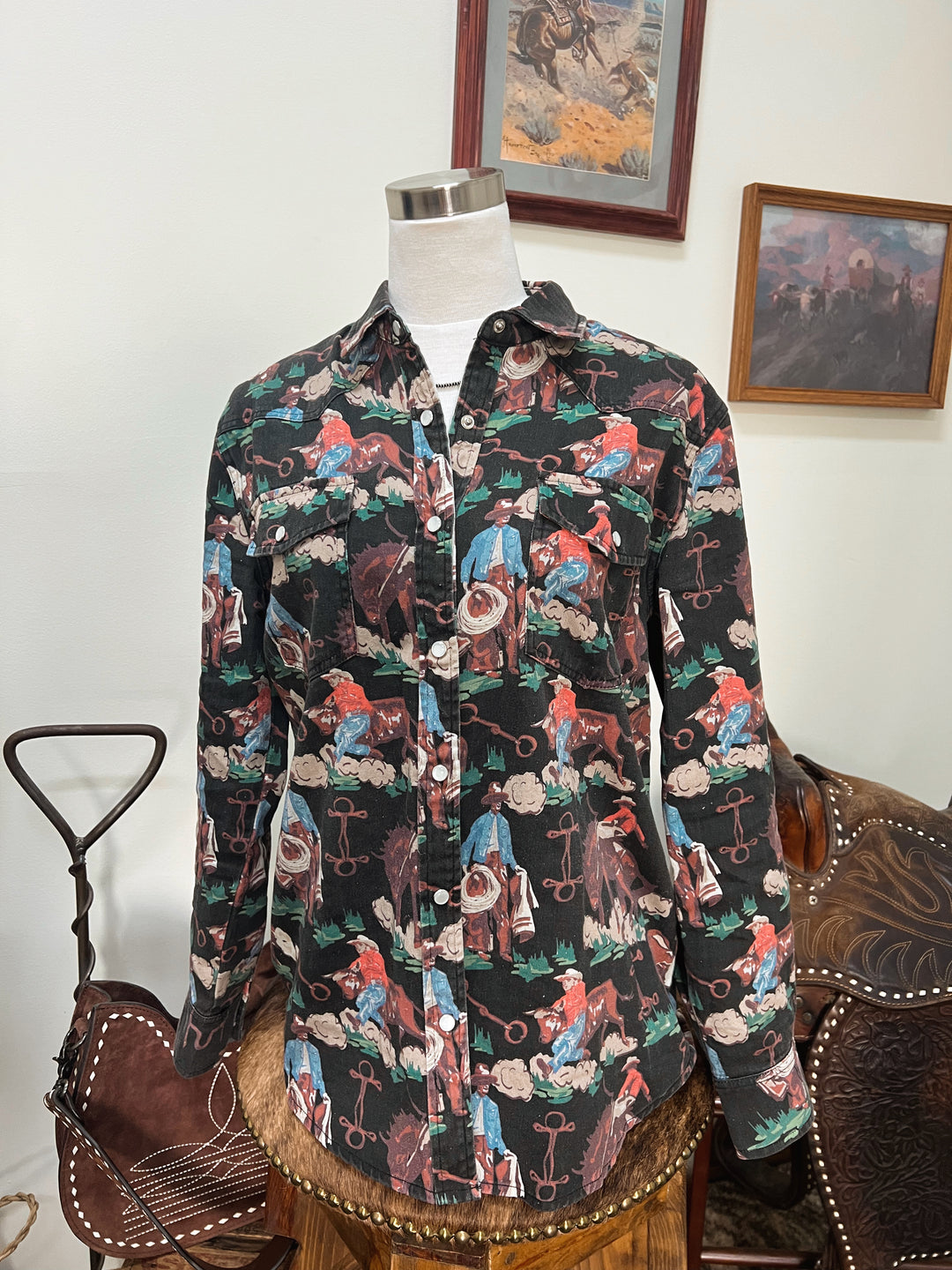 Cowboy Stamp Pearl Snap Button-Up