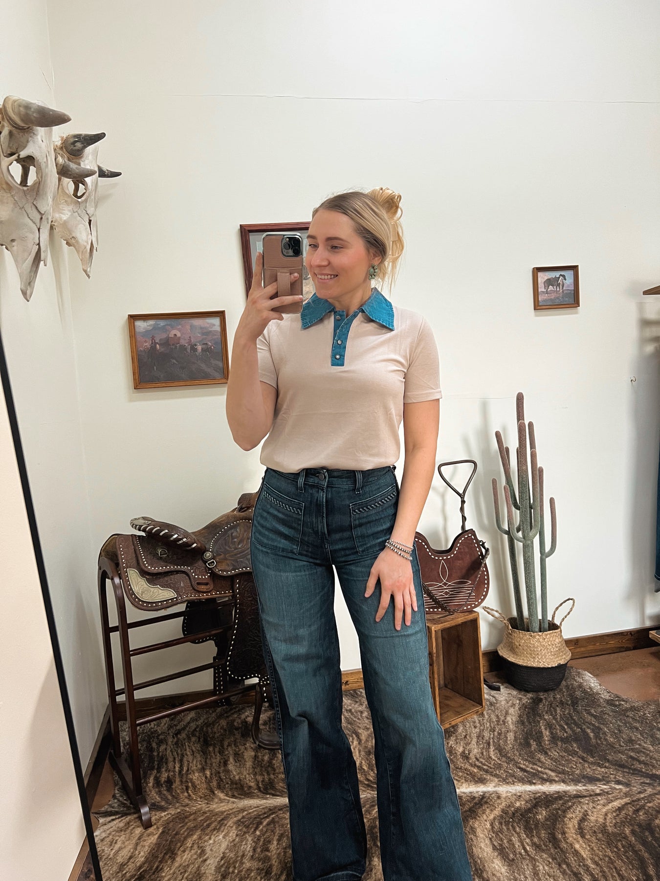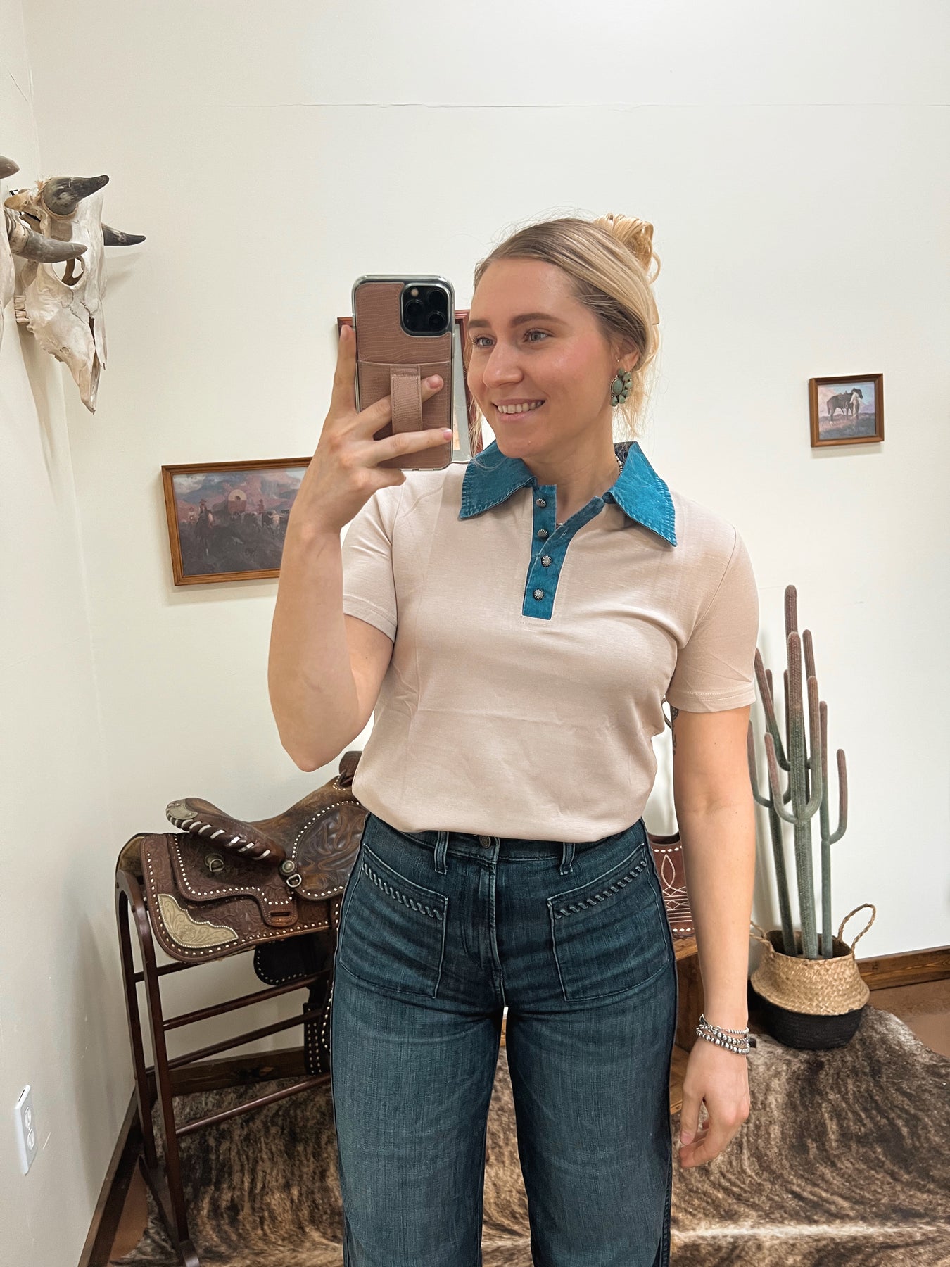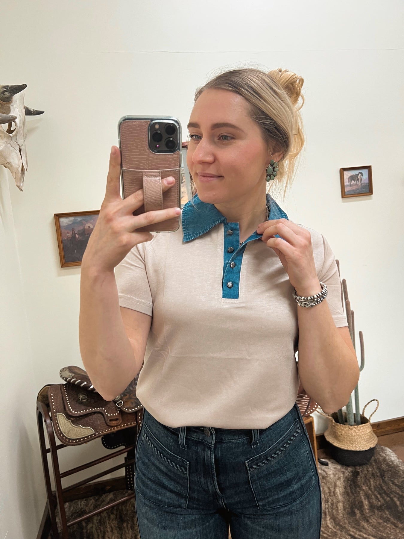 we took the layering elements you want from a l/s denim button up but put in a soft cloud like fabric short sleeve top. {Examples in pictures of how to layer}